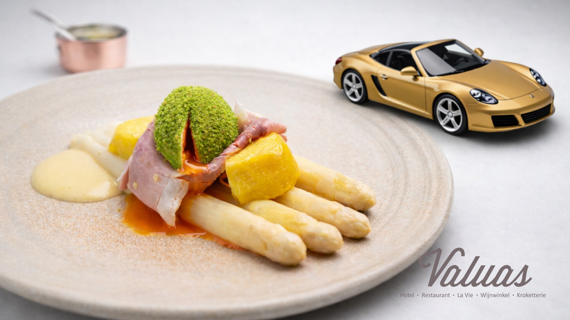 Laat je op Michelin-niveau meenemen door Restaurant Valuas in Venlo. Een culinaire tourtocht langs aspergetelers, Noord-Limburgse landschappen en topgastronomie waarin rijden, beleven en culinair genieten samenkomen. Verwacht bol pijl autonavigatie, ludieke opdrachten, verrassende smaken en een luxe finale met een verfijnd aspergediner. Geniet van het leven. Bij Valuas.